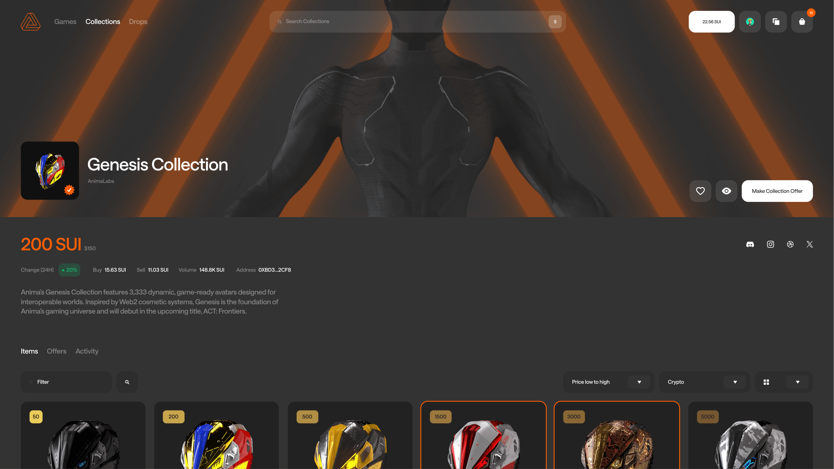Introducing Anima Nexus, a web3 configurator for gamers to customise their NFT's with skins like helmets, boots and armour.