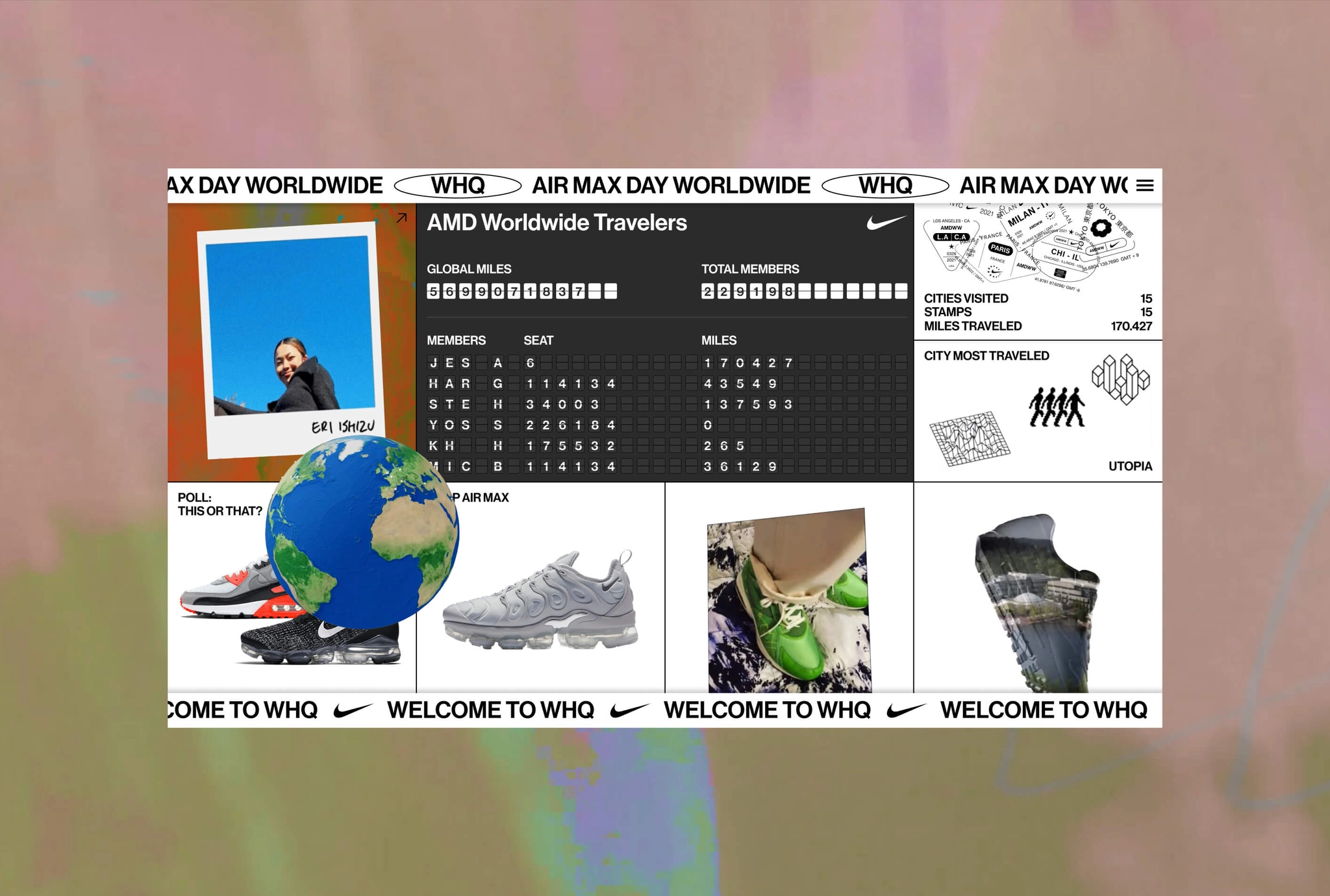 Available for only 24 hours on March 26th 2021, hundreds of thousands of Nike members from across the world visited the site, logging more than 5.7 billion virtual miles in the process.